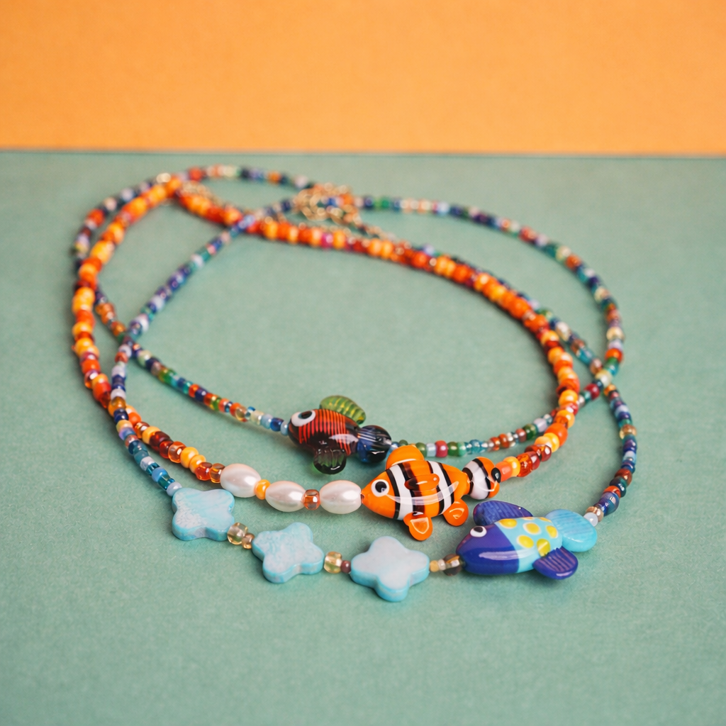 Colourful glass fish bead necklaces